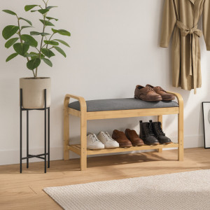 Dotaz na produkt Na splátky ještě dnesStylový a praktický botník z kvalitního bambusu kombinuje úložný prostor s pohodlným místem k sezení. Botník má přírodní barvu, která se snadno sladí s jakýmkoliv interiérem. Polstrovaný sedák v šedé barvě poskytuje komfort při obouvání. Tento botník je ideální volbou pro ty, kdo hledají funkční a estetické řešení pro ukládání bot a zároveň ocení pohodlí při každodenním používání. Skvělý doplněk do moderního domova.