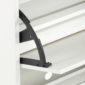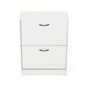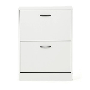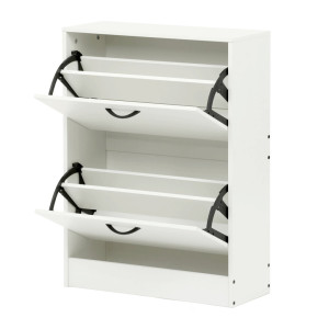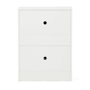 Dotaz na produktBotník s dvěma přihrádkami je vyroben z MDF desek v bílé barvě, které zajišťují pevnost a stabilitu celého kusu nábytku. Každá přihrádka je vybavena otevíracím mechanismem s černými kovovými panty, které umožňují snadný přístup k uloženým botám a zároveň pevné držení přihrádky v zavřené poloze. Kompaktní rozměry botníku umožňují jeho umístění i do menších prostor, přičemž horní deska nabízí možnost využití jako odkládací plocha. Povrchová úprava MDF desek je hladká a snadno se udržuje, což přispívá k dlouhé životnosti produktu. Botník je vhodný pro uložení několika párů obuvi a pomáhá udržet pořádek v předsíni či chodbě.