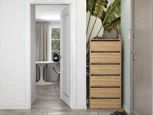 Dotaz na produkt Na splátky ještě dnesModerní botník Modis bez úchytek je ideální volbou do každé předsíně. Pečlivé zpracování a elegantní linie dodají vaší předsíni styl i praktický úložný prostor. Botník je modulární - můžete jej prakticky libovolně rozšiřovat. Nábytek je vyroben z vysoce kvalitního lamina, které je snadno udržovatelné a odolné proti oděru.