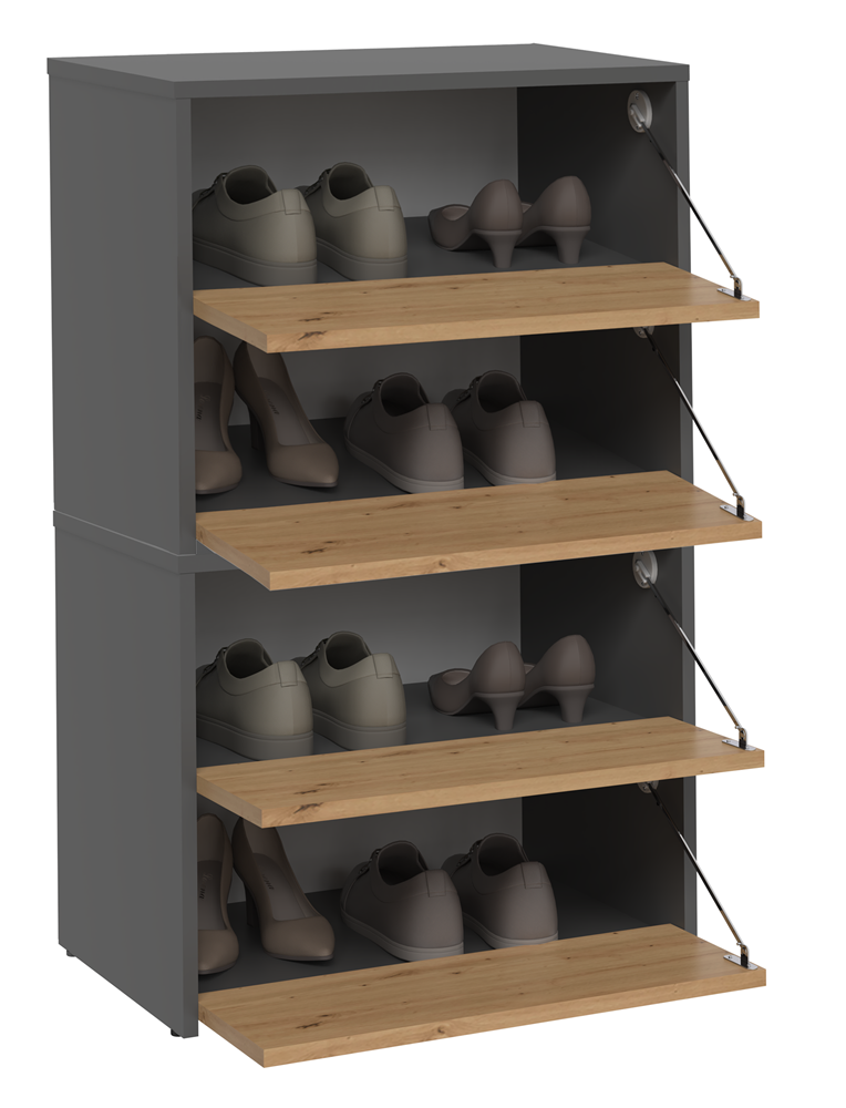 Dotaz na produkt Na splátky ještě dnesModerní botník Modis bez úchytek je ideální volbou do každé předsíně. Pečlivé zpracování a elegantní linie dodají vaší předsíni styl i praktický úložný prostor. Botník je modulární - můžete jej prakticky libovolně rozšiřovat. Nábytek je vyroben z vysoce kvalitního lamina, které je snadno udržovatelné a odolné proti oděru.