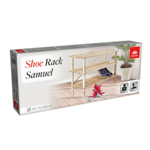 Dotaz na produktDřevěný botník o rozměru 26 x 74 x 48,5 cm je snadno sestavitelný. Získáte s ním dostatek prostoru pro všechny vaše boty. Botník je pevný, proto se hodí i k odkládání jiných předmětů či k vystavení pokojových květin. Botník je vyrobený z borovicového dřeva, dodáván nelakovaný.