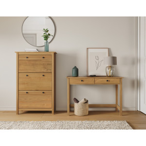 Dotaz na produkt Na splátky ještě dnesmateriál masiv borovice voskovaná v medovém odstínu kovové úchytky v barevném provedení černěná mosaz 3 dvouřadé výklopy