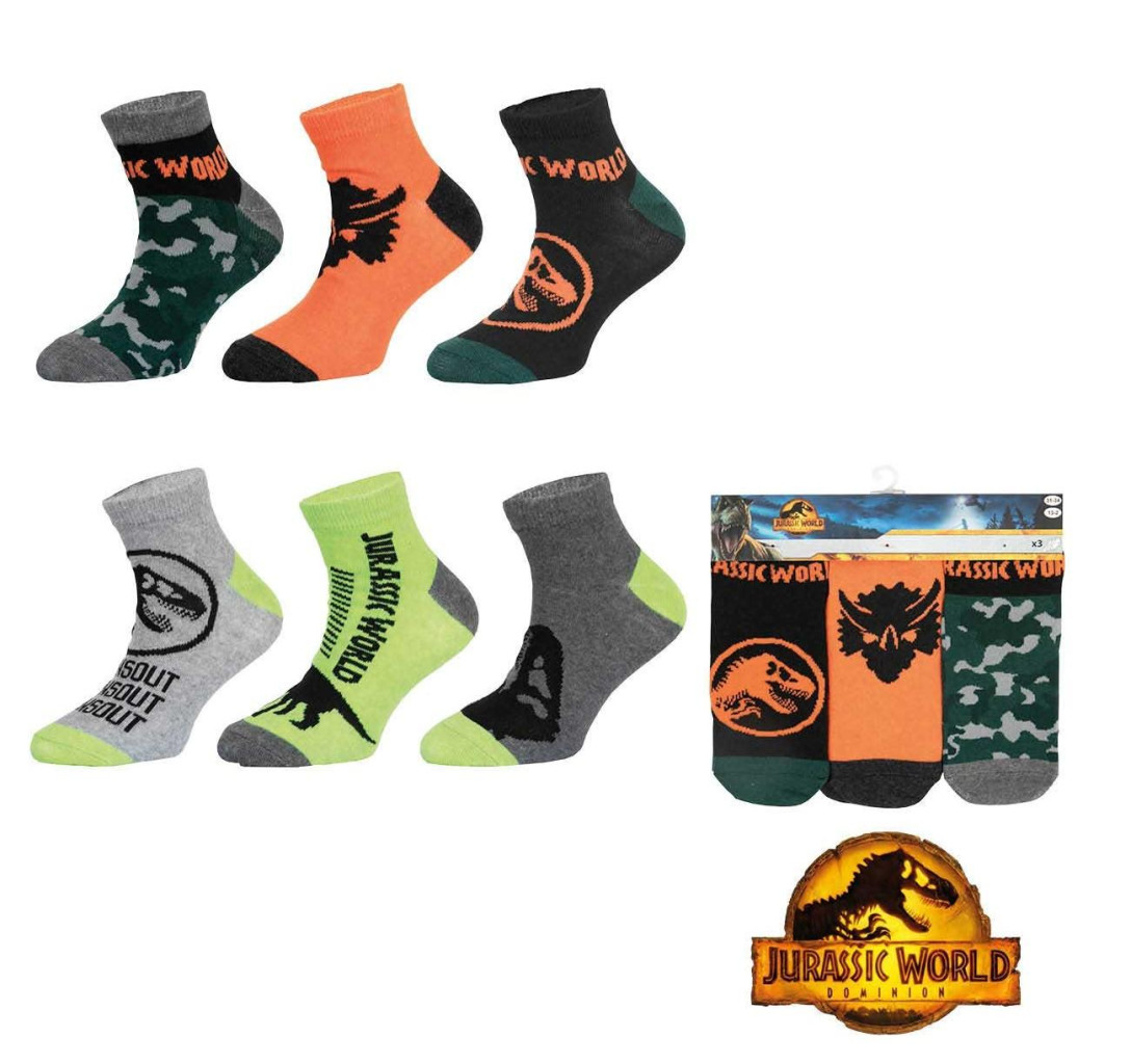Box 40 sad 3 párů. Sada 3 ks ponožek s motivem Jurský svět. Materiál: 75% Polyester, 24% Cotton, 1% Elastane. Velikosti: od každé varianty 6x23-26, 7x27-30, 7x31-34. Cena za balení 40 ks sad po 3 ks. Oficiální licence, Erve. VAN DER ERVE NV Weiveldlaan 41 bus 21 1930 Zaventem Belgium supportUK@erve.com