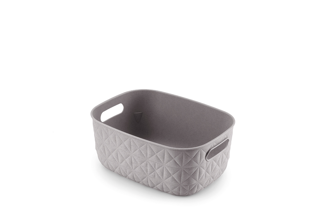 Tento stylový a praktický box se vyrábí ze 70% recyklovaného plastu. Je tedy šetrnější k životnímu prostředí. Zdobí ho jemná textura v podobě trojúhelníků a čtverců, která připomíná prošívanou tkaninu. Doplní vybavení kuchyně, obývacího pokoje, ložnice a klidně i koupelny.