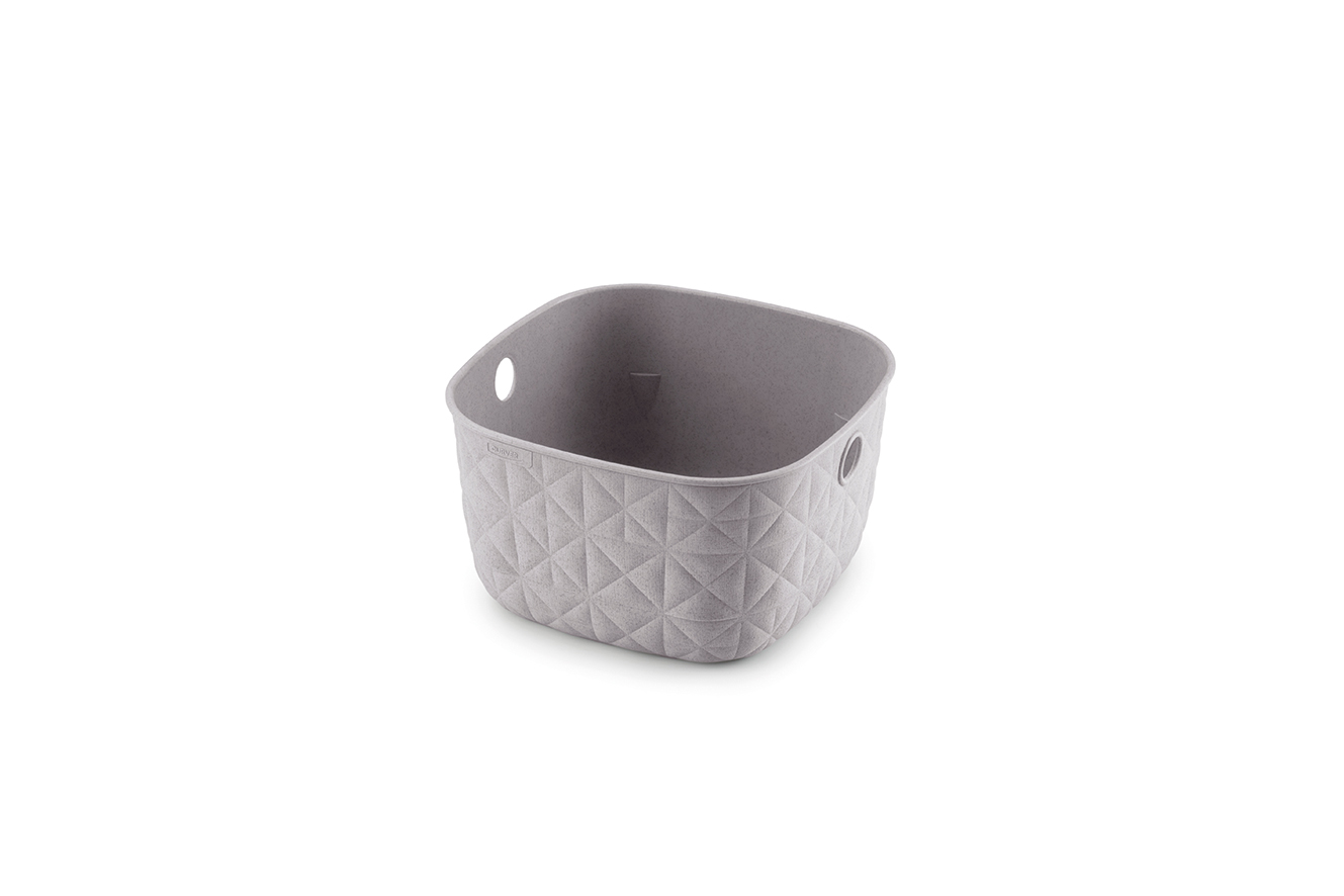 Tento stylový a praktický box se vyrábí ze 70% recyklovaného plastu. Je tedy šetrnější k životnímu prostředí. Zdobí ho jemná textura v podobě trojúhelníků a čtverců, která připomíná prošívanou tkaninu. Doplní vybavení kuchyně, obývacího pokoje, ložnice a klidně i koupelny.
