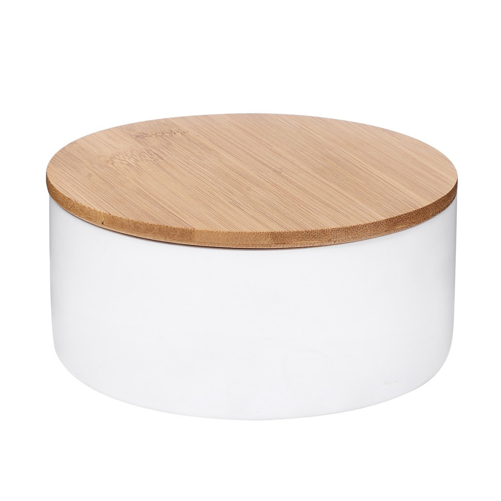 Dotaz na produktElegantní volně stojící kosmetický box LIBRA, jehož součástí je praktické zrcátko, slouží na ukládání odličovacích tampónků a potřeb. Kombinace bílé keramiky a dřevěného materiálu je díky svému unikátnímu designu vhodný doplněk do každé koupelny.