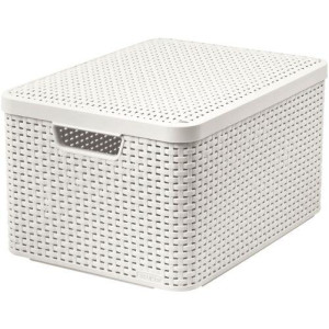 Dotaz na produktBox úložný RATAN STYLE2 s víkem má moderní design, otvory ve výpletu zajišťují cirkulaci vzduchu. Box má dva úchyty na kratších stranách pro snadnější manipulaci. Je stohovatelný a snadno omyvatelný.
