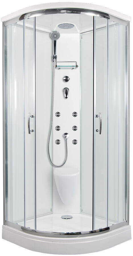 Masážní sprchový box ARTTEC BRILIANT MODEL 5 clear, vlastní výroby, s posuvnými dveřmi čtvrtkruhový se vyznačuje vysokou kvalitou a jednoduchým designem. Nabízí vše, co potřebujete k pohodlnému každodennímu sprchování: baterii s ruční sprchou a držákem, poličku, vestavěné sedátko, stropní sprchu a vaničku z litého mramoru. Pro větší relaxaci přináší i 6ks masážních trysek.