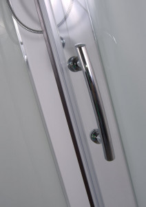 Klasický čtvrtkruhový sprchový box vlastní výroby s posuvnými dveřmi se vyznačuje jednoduchým designem, vysokou kvalitou zpracování. Profil je z leštěného hliníku, prosklení z 5 mm bezpečnostního grape skla, zadní sklo super bílé neprůhledné, šířka vstupu 53 cm. Vanička je z litého mramoru, vlastní výroby, v bílé barvě. Výroba panelu, předního panelu k vaničce a stropu je nyní z kompozitních materiálů, které se používají v leteckém průmyslu. Vůči dříve používané polyesterové pryskyřici je kompozitní materiál ekologičtější, lépe zpracovatelný a při stejné tloušťce výrobku pevnější. Je to také důvod, proč můžeme dosáhnout tak dokonalé povrchové úpravy.