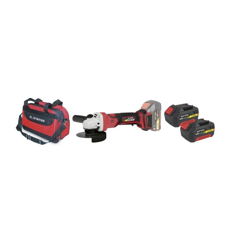 Bruska úhlová aku AGB L2025, Ø 115 mm, 18 V, 2 baterie, 5 Ah, taška, STAYER