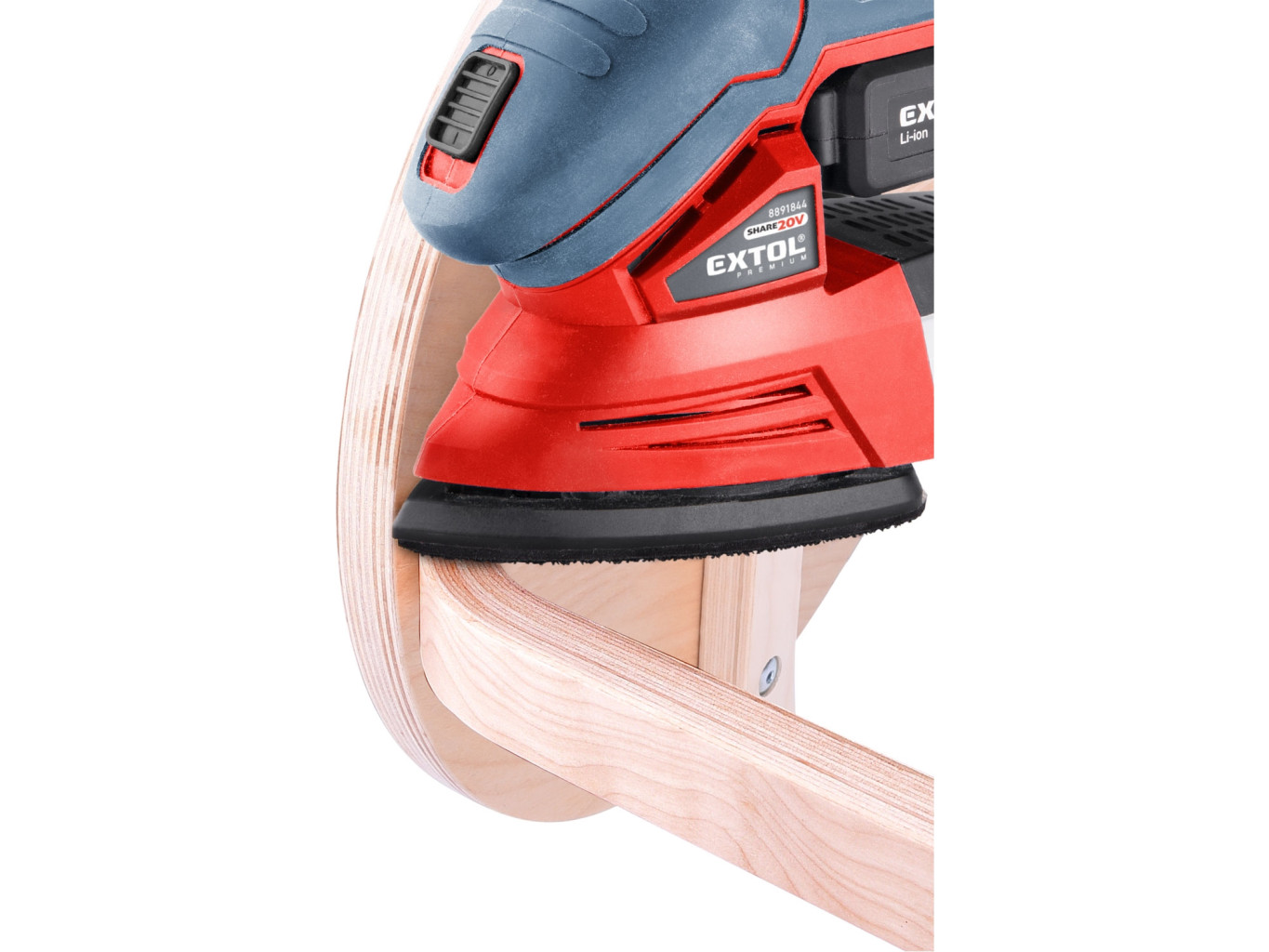 Dotaz na produkt Na splátky ještě dnesAku vibrační bruska je ideální nástroj pro broušení dřeva a dřevěných materiálů, kovů a k zabroušení poškozených míst povrchové úpravy, např. barvy a laku, dále tmelů apod. bez použití vody. Díky svému tvaru je velmi vhodný pro broušení v rohových a obtížně dostupných prostorech. Brusná plocha je vybavena suchým zipem, který umožňuje snadnou výměnu brusných papírů. Integrované odsávání pilin udržuje čistý pracovní prostor při práci a po práci jednoduše vysypete sběrný box a je uklizeno. Pro běžnou práci dostačují jeden nebo dva 2000mAh akumulátory, které můžete rychle nabít v rychlonabíječce, pro náročnější nebo delší práci doporučujeme větší akumulátory s kapacitou 4000–5000mAh. Akumulátor lze použít ve všech typech nářadí řady EXTOL SHARE20V. Díky použité Li-ion technologii je ho možné kdykoliv dobíjet, aniž by se tím snižovala jeho kapacita. Li-ion akumulátor ztrácí energii vlivem samovybíjení velmi pomalu a vydrží dlouho nabitý a připravený k použití.