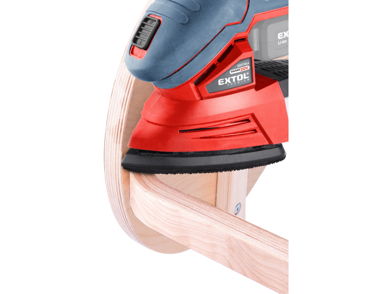 Dotaz na produktAku vibrační bruska je ideální nástroj pro broušení dřeva a dřevěných materiálů, kovů a k zabroušení poškozených míst povrchové úpravy, např. barvy a laku, dále tmelů apod. bez použití vody. Díky svému tvaru je velmi vhodný pro broušení v rohových a obtížně dostupných prostorech. Brusná plocha je vybavena suchým zipem, který umožňuje snadnou výměnu brusných papírů. Integrované odsávání pilin udržuje čistý pracovní prostor při práci a po práci jednoduše vysypete sběrný box a je uklizeno. Pro běžnou práci dostačují jeden nebo dva 2000mAh akumulátory, které můžete rychle nabít v rychlonabíječce, pro náročnější nebo delší práci doporučujeme větší akumulátory s kapacitou 4000–5000mAh. Akumulátor lze použít ve všech typech nářadí řady EXTOL SHARE20V. Díky použité Li-ion technologii je ho možné kdykoliv dobíjet, aniž by se tím snižovala jeho kapacita. Li-ion akumulátor ztrácí energii vlivem samovybíjení velmi pomalu a vydrží dlouho nabitý a připravený k použití.