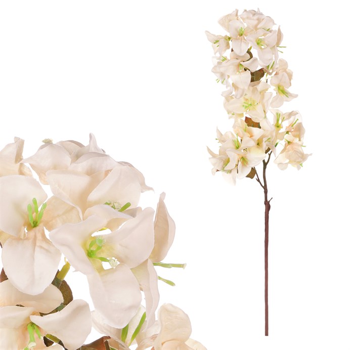 Dotaz na produkt Na splátky ještě dnesUdělejte si radost pořízením nevadnoucí krásy v podobě umělé řezané květiny a oživte svůj interiér, či jiné zvolené místo, nádhernými květy a barvami. Nechť je právě bugenvilie s krémovými květy významným bodem pro vaší vytouženou výzdobu. Variant použití je mnoho a je jen na fantazii každého z nás, k čemu tuto umělou dekoraci použije. Můžeme ji nechat vyniknout třeba v krásné váze na viditelném místě, nebo vytvořit s dalšími druhy nádhernou kompozici. Naše široká nabídka umělých řezaných květin totiž nabízí nepřeberné množství možností, ze kterých si vybere každý dle svého vkusu či události, pro kterou je určena. Pokud hledáte oživení vybraného místa přírodním půvabem a barvami, ale zároveň nemáte možnosti, jak se starat o živé rostliny, bude právě tato umělá květina pro vás ideální volbou.