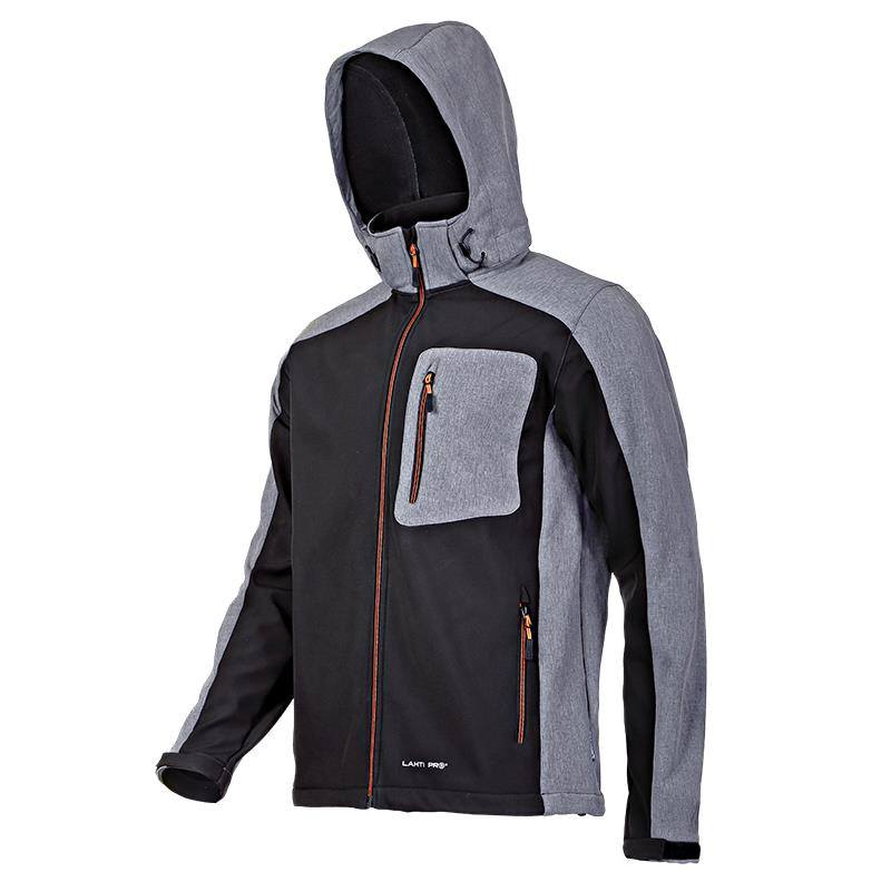 bunda softshellová s kapucí černo-šedo-oranžová, LAHTI PROpovrch: látka typu softshell, 100% polyester, gramáž 310 g/m2podšívka: mikrofleece s gramáži 160 g/m2speciální 3-vrstvá látka SOFTSHELL s...