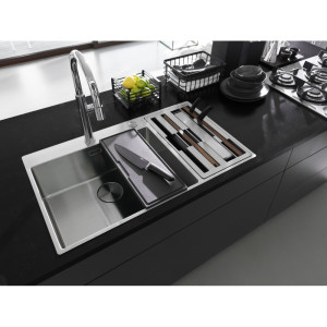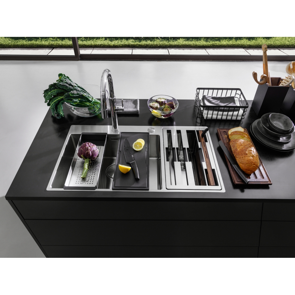 Dotaz na produkt Na splátky ještě dnesNerezový dřez Box Center. Snadno kombinovatelné, skvěle organizované. Box Center je chytré a vysoce praktické řešení s krásným a přesvědčivým designem. Dva skvěle sloučené dřezy nabízejí prostor pro skladování a sušení často používaných kuchyňských doplňků, které jsou uloženy přímo tam, kde je nejvíce potřebujete. Cena zahrnuje: Doplňky: Miska, dřevěná přípravná deska, plastová přípravná deska, 3 nože vč. dřevěného držáku, odkapávač na nádobí, víko. Easy Click sítkový ventil 3 1/2" s přepadem a nerezovou krytkou ventilu. Sítkový ventil 3 1/2" s přepadem. Sifon pro úsporu místa 6/4" s odbočkou na myčku nádobí. Otvor pro baterii ∅ 35 mm a pro Easy Click knoflík ∅ 35 mm.