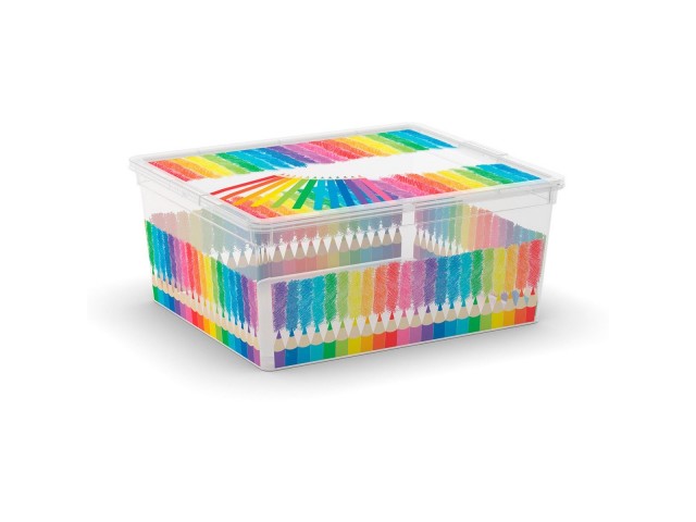 Colours Arty provedení si oblíbí každé dítě. V případě potřeby je možné více boxů stohovat na sebe či poskládat do větších - dochází tak k úspoře místa. Jednoduše se přenáší díky postranním držadlům. Je dodáván spolu s praktickým víkem, které se na box jednoduše zacvakne. Rozměry C Boxu Colours Arty jsou 40 x 17 x 34 cm.