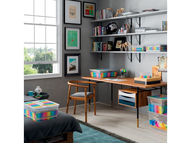 Úložný box je vhodný k uskladnění pastelek, hraček či k organizaci drobností ve vaší domácnosti. Jeho objem je 2 litry a je dodáván v Colours Arty provedení.