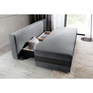 Dotaz na produkt Na splátky ještě dnesCalia je jednoduchá a vkusná pohovka o rozměrech 195 x 91 x 83 cm, která je stvořena pro milovníky minimalistických provedení. Je ideální pro relaxaci ve dne i v noci, protože může mít podobu postele o rozměrech 195 x 140 cm. Za zmínku stojí také prostorný úložný prostor na ložní prádlo a další dekorativní polštáře. Náš kus nábytku je laděn v jednotném odstínu, který je prolomen širokým pruhem procházejícím spodní částí sedáku. Kromě designového provedení stojí za zmínku i výplň naší pohovky, jejíž sedák je vybaven vlnitou pružinou a pěnou T25. Calia zaujme svou jednoduchostí a minimalismem s charakterem. Kombinuje maximální pohodlí s útulnými prvky, které budou perfektní výplní každého bytu.Látky: Sawana 21, Soft 11, Jungle 32