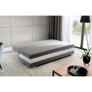 Dotaz na produkt Na splátky ještě dnesCalia je jednoduchá a vkusná pohovka o rozměrech 195 x 91 x 83 cm, která je stvořena pro milovníky minimalistických provedení. Je ideální pro relaxaci ve dne i v noci, protože může mít podobu postele o rozměrech 195 x 140 cm. Za zmínku stojí také prostorný úložný prostor na ložní prádlo a další dekorativní polštáře. Náš kus nábytku je laděn v jednotném odstínu, který je prolomen širokým pruhem procházejícím spodní částí sedáku. Kromě designového provedení stojí za zmínku i výplň naší pohovky, jejíž sedák je vybaven vlnitou pružinou a pěnou T25. Calia zaujme svou jednoduchostí a minimalismem s charakterem. Kombinuje maximální pohodlí s útulnými prvky, které budou perfektní výplní každého bytu.Látky: Sawana 21, Soft 17, Jungle 32