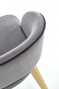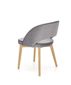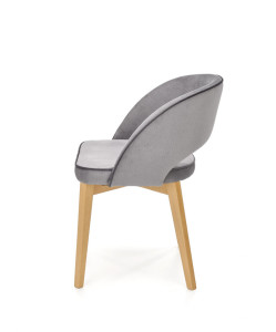 Židle je vyrobena z dubového dřeva a je potažena sametem.