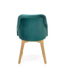 Židle je vyrobena z bukového dřeva a je potažena látkou.