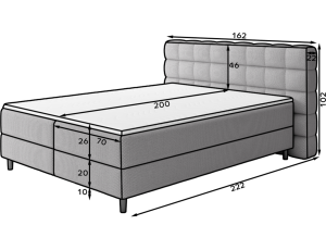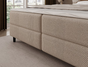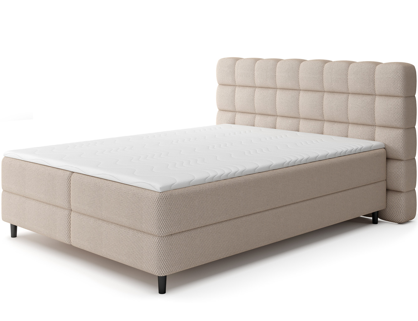 Dotaz na produkt Na splátky ještě dnesKontinentální postel Camma kombinuje moderní design, funkčnost a vynikající pohodlí při spaní, což z ní činí perfektní volbu pro elegantní a praktickou ložnici; k dispozici ve třech velikostech – 140x200 cm, 160x200 cm a 180x200 cm – dokonale se přizpůsobí prostoru i individuálním potřebám, zatímco její pevná konstrukce s celkovou výškou 102 cm a výškou sedáku 56 cm zajišťuje každodenní pohodlí; postel má hloubku 222 cm a šířka závisí na zvoleném modelu – 162 cm, 182 cm nebo 202 cm – což jí dodává stabilní a působivý vzhled, který dodá luxusní nádech každému interiéru; čalouněná vysoce kvalitní, měkkou látkou se stylově prošívaným čelem kombinuje moderní eleganci s pohodlnou oporou pro čtení nebo relaxaci; praktický úložný box poskytuje prostor pro ložní prádlo a pomáhá udržovat v ložnici pořádek, díky čemuž je postel Camma nejen pohodlná, ale i vysoce funkční; design doplňují 10cm černé dřevěné nohy, které dodávají vizuální lehkost a usnadňují úklid pod postelí; Model Camma je ideální volbou pro ty, kteří si cení moderního stylu, elegance, odolnosti a pohodlí a zajišťují zdravý a klidný spánek každou noc. Materiál: Calmora 18