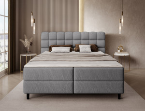Dotaz na produkt Na splátky ještě dnesKontinentální postel Camma kombinuje moderní design, funkčnost a vynikající pohodlí při spaní, což z ní činí perfektní volbu pro elegantní a praktickou ložnici; k dispozici ve třech velikostech – 140x200 cm, 160x200 cm a 180x200 cm – dokonale se přizpůsobí prostoru i individuálním potřebám, zatímco její pevná konstrukce s celkovou výškou 102 cm a výškou sedáku 56 cm zajišťuje každodenní pohodlí; postel má hloubku 222 cm a šířka závisí na zvoleném modelu – 162 cm, 182 cm nebo 202 cm – což jí dodává stabilní a působivý vzhled, který dodá luxusní nádech každému interiéru; čalouněná vysoce kvalitní, měkkou látkou se stylově prošívaným čelem kombinuje moderní eleganci s pohodlnou oporou pro čtení nebo relaxaci; praktický úložný box poskytuje prostor pro ložní prádlo a pomáhá udržovat v ložnici pořádek, díky čemuž je postel Camma nejen pohodlná, ale i vysoce funkční; design doplňují 10cm černé dřevěné nohy, které dodávají vizuální lehkost a usnadňují úklid pod postelí; Model Camma je ideální volbou pro ty, kteří si cení moderního stylu, elegance, odolnosti a pohodlí a zajišťují zdravý a klidný spánek každou noc. Materiál: Calmora 05