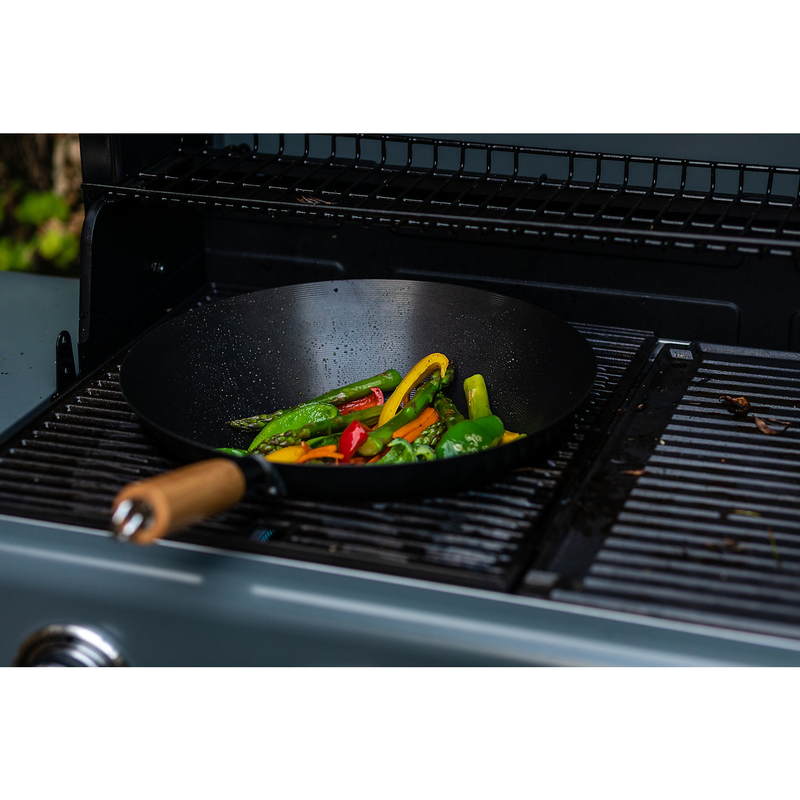 Dotaz na produkt Na splátky ještě dnesPánev Wok z vysoce kvalitní karbonové oceli s nepřilnavým povrchem je ideální pro přípravu tradičních pokrmů asijské kuchyně. Dlouhá dřevěná rukojeť pro snadné držení. Součástí balení jsou i dvě vařečky. Kompatibilní s roštem Culinary Modular. Kompatibilní s grily řady 4 Series Classic L, 4 Series Woody L, 3 Series Classic L.