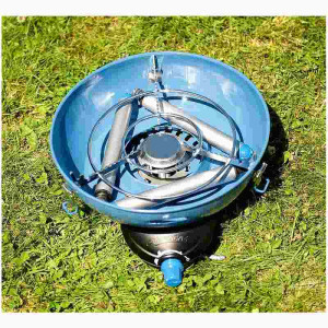 Praktické využití – po odejmutí grilovacích ploch můžete vařič použít s běžným kempingovým nádobím nebo konvicí.