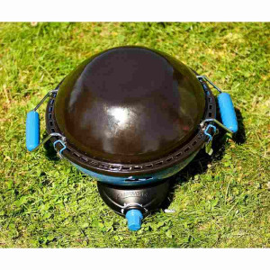 Multifunkční design – oboustranný tál s nepřilnavou teflonovou úpravou, chromovaný rošt, a dokonce i víko, které poslouží jako wok pánev – to vše vám umožní kreativní vaření pod širým nebem.