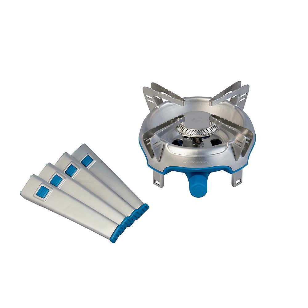 Díky piezo zapalování jej snadno zapálíte bez použití zápalek. Nohy vařiče lze pro transport jednoduše odejmout stisknutím tlačítka, a ve sbaleném stavu je vařič kompaktní. Součástí balení je přepravní taška, do které pohodlně uložíte vařič i kartuši CV 470 Plus.
