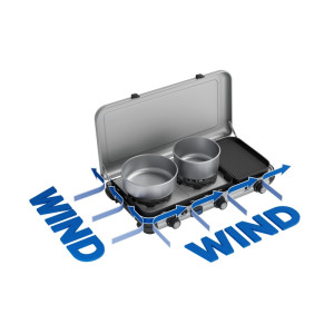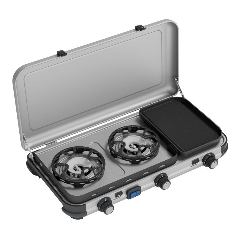 Dotaz na produkt Na splátky ještě dnesVařič Camping Kitchen™ 2 Multi-Cook kombinuje vaření a grilování v jednom díky třem nezávislým hořákům, které umožňují individuální regulaci tepla. Současně vařte, smažte a opékejte a připravte si horké a včas servírované jídlo. I když je počasí nepředvídatelné, technologie Flame Guard™ hořáků je navržena pro optimální ochranu plamene pro nejlepší výsledek z vaření v přírodě. Snadno se přenáší. Díky zesíleným pantům spojujícím víko se základnou se celý vařič stává vlastním kufříkem pro čisté a rychlé sbalení před cestou i po ní. Podpěry pánví a grilovací deska jsou odnímatelné pro snadné čištění. Zapalování: piezoelektrické (včetně trubkového hořáku). Tlak: regulovaný. Materiál: Tělo z lakované oceli, vysokoteplotní barva. Materiál: smaltovaná ocel (černá). Materiál: Tělo z lakované oceli, vysokoteplotní barva. Materiál: smaltovaná ocel (černá). Maximální O pánví a hrnců: 20 cm. Rozměry grilovací plochy: 14x24,5 cm. Ovládací knoflíky: 3. Rozměry v zavřeném stavu (dxšxv): 60x35x10,8 cm. Rozměry v otevřeném stavu (dxšxv): 62x38,8x36 cm. Hmotnost: 5,4 kg
