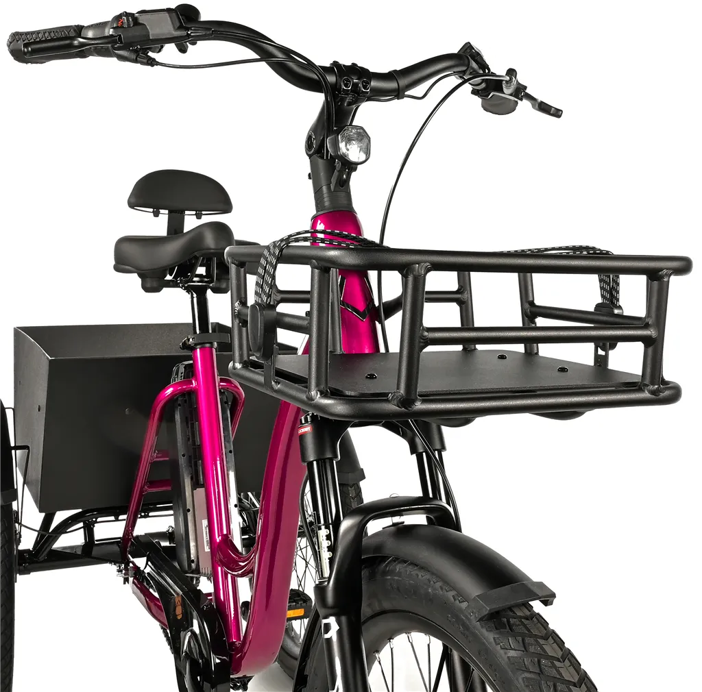 Luxusní pohodlí, absolutní stabilita a prostor, který vás překvapí Tříkolka CURTIS je navržena pro ty, kteří hledají maximální komfort a stabilitu při každé jízdě. Díky unikátnímu zadnímu diferenciálu nabízí plynulý a bezpečný zážitek, ať už se pohybujete ve městě nebo na venkově. Pohodlné sezení a snadný nástup zajišťují, že jízda je vždy příjemná a bez námahy. K tomu přidejte velkorysý úložný prostor, který pojme vše, co potřebujete na každodenní pochůzky nebo dlouhé výlety – CURTIS vám poskytne pohodlí, praktičnost a spolehlivost v každé situaci. Možnost dokoupení pláštěnky na úložný box. LEHKÝ HLINÍKOVÝ RÁM Flexibilní jízda po městě. Tříkolka CURTIS má lehký hliníkový rám, takže vás při jízdě zatíží maximálně na nosiči převážený nákup. VŽDY PŘIPRAVEN Silná baterie od LG s kapacitou 602 Wh zaručuje dlouhou životnost. Rychlonabíječka s nabíjecím proudem až 4 Ah výrazně zkracuje dobu potřebnou k nabití.