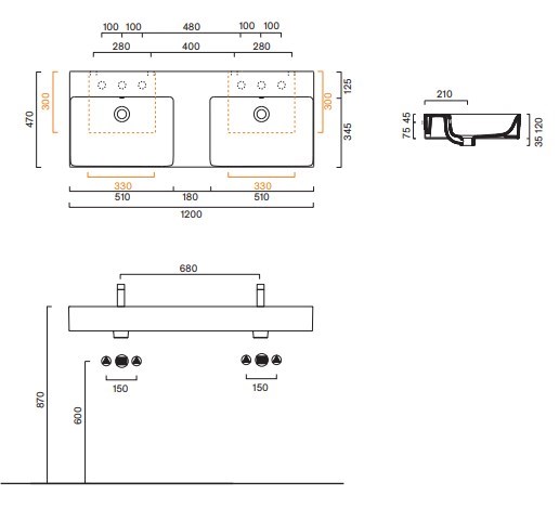 Instalace: na desku;nábytková;nástěnná (závěsná)