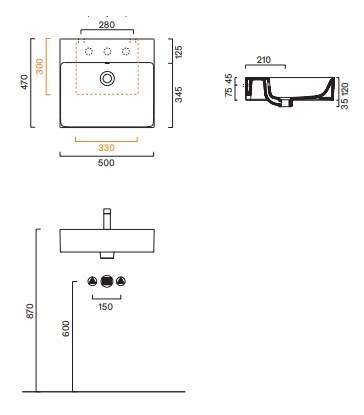Instalace: na desku;nábytková;nástěnná (závěsná)