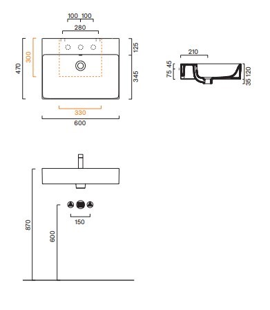 Instalace: na desku;nábytková;nástěnná (závěsná)