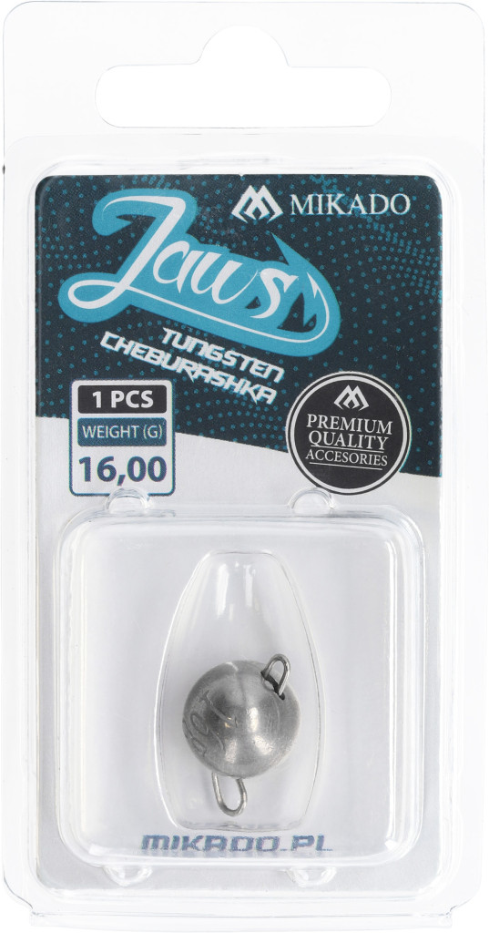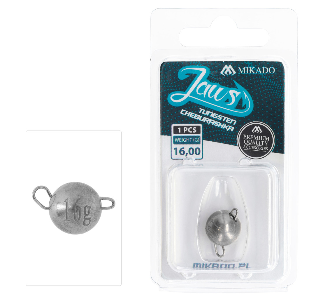 vaha: 16 Univerzální sada wolframových čeburašek JAWS určená pro lov s gumovými nástrahami. Kombinace pěti nejoblíbenějších gramáží umožňuje přizpůsobit se různým hloubkám a proudům. Díky vyšší hustotě wolframu jsou čeburašky menší než olověné, což zlepšuje nához i vedení nástrahy.