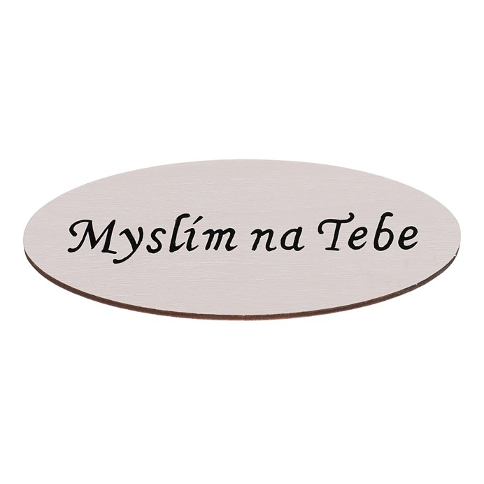 Dotaz na produktChystáte se udělat blízké osobě radost hezkým dárkem a rádi máte věci promyšlené do nejmenších detailů? V tom případě by i tyto drobné cedulky s nápisy neměly chybět ve vaší sbírce dekorací. Právě tato oválná dřevěná bílá cedulka s černým nápisem „Myslím na Tebe“ bude milým důkazem vašich citů k milované osobě.