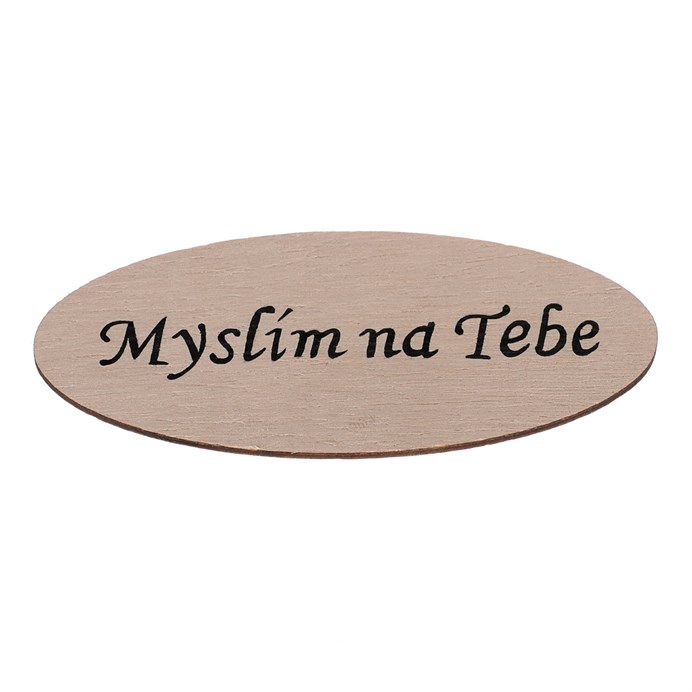 Dotaz na produktChystáte se udělat blízké osobě radost hezkým dárkem a rádi máte věci promyšlené do nejmenších detailů? V tom případě by i tyto drobné cedulky s nápisy neměly chybět ve vaší sbírce dekorací. Právě tato oválná dřevěná cedulka s černým nápisem „Myslím na Tebe“ bude milým důkazem vašich citů k milované osobě.