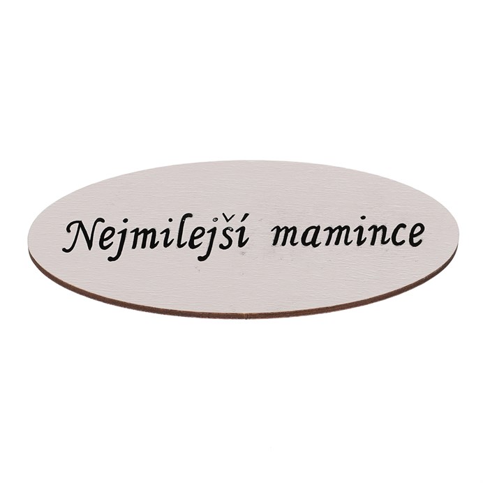 Dotaz na produktChystáte se udělat radost své mamince hezkým dárkem a rádi máte věci promyšlené do nejmenších detailů? V tom případě by i drobné cedulky s nápisy a věnováním neměly chybět ve vaší sbírce dekorací. Právě tato oválná bílá dřevěná cedulka s černým nápisem „Nejmilejší mamince“ bude milým důkazem toho, že si jí vážíte.