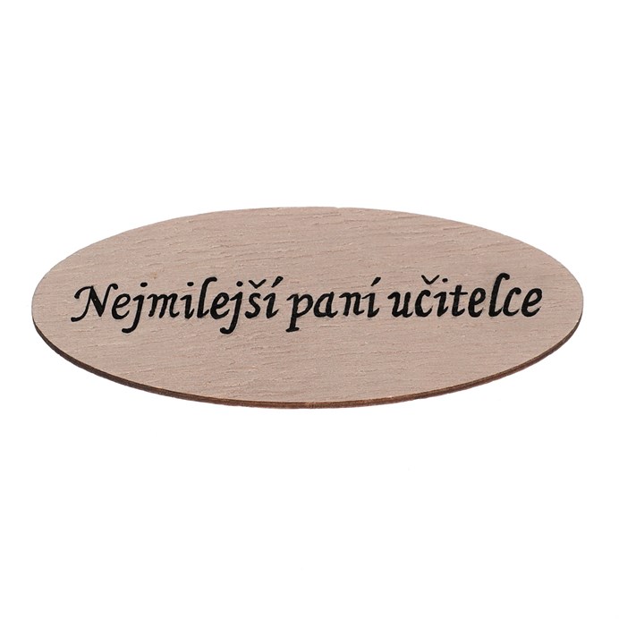 Dotaz na produktChystáte se udělat radost své oblíbené učitelce hezkým dárkem a rádi máte věci promyšlené do nejmenších detailů? V tom případě by i drobné cedulky s nápisy a věnováním neměly chybět ve vaší sbírce dekorací. Právě tato oválná dřevěná cedulka s černým nápisem „Nejmilejší paní učitelce“ bude milým důkazem toho, že si jí vážíte.