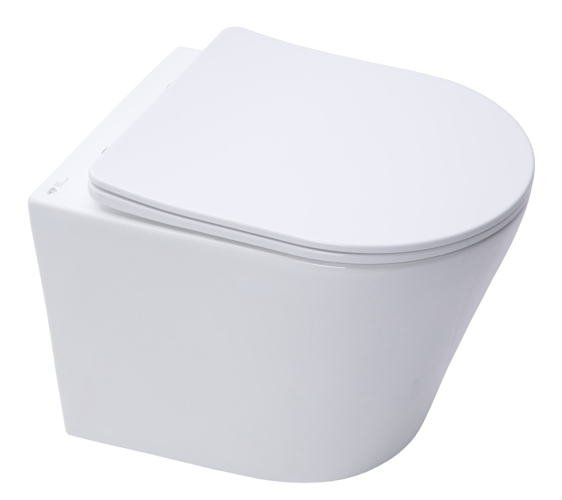 - Závěsné WC rim-ex (bez splachovacího okruhu) 48 cm včetně slim soft close sedátka, se skrytým uchycením SATINF010RREXP