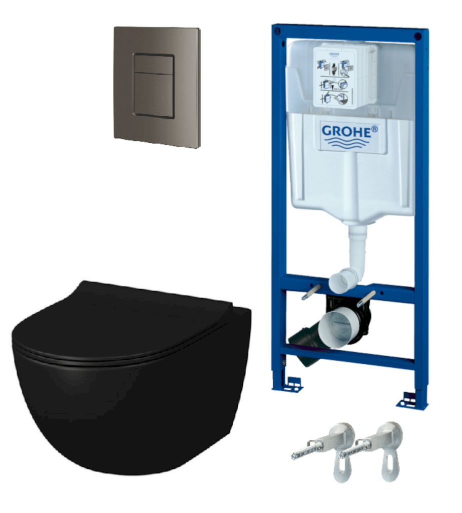 Dotaz na produkt Na splátky ještě dnesAkční komplet v černé matné barvě. Balíček obsahuje vše co potřebujete pro instalaci závěsného WC od značek VitrA a Grohe.