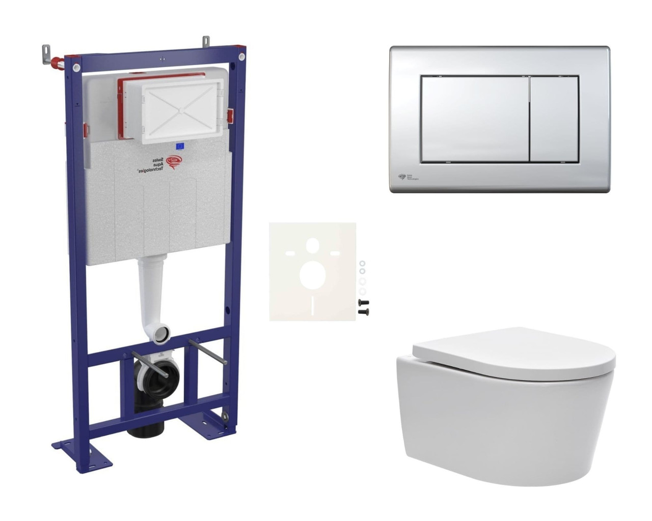 V setu najdete kompletní sadu - závěsné WC mísy, podomítkovou nádrž, splachovací ovládací tlačítko na zeď a často i zvukoizolační vložku, aby napouštění nádržky bylo tiché a nikoho nerušilo.