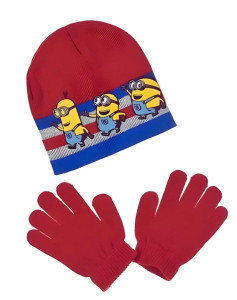 Souprava čepice a rukavice Mimoni. Červené provedení. 100% acrylyc. Oficiální licence.