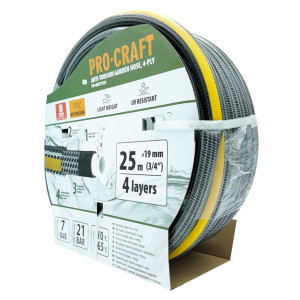 Černo-žlutá zahradní hadicí Procraft PR-4KAT1925 je zkrátka spolehlivým a odolným pomocníkem pro každého zahrádkáře, který ocení dlouhou životnost a bezstarostné používání.