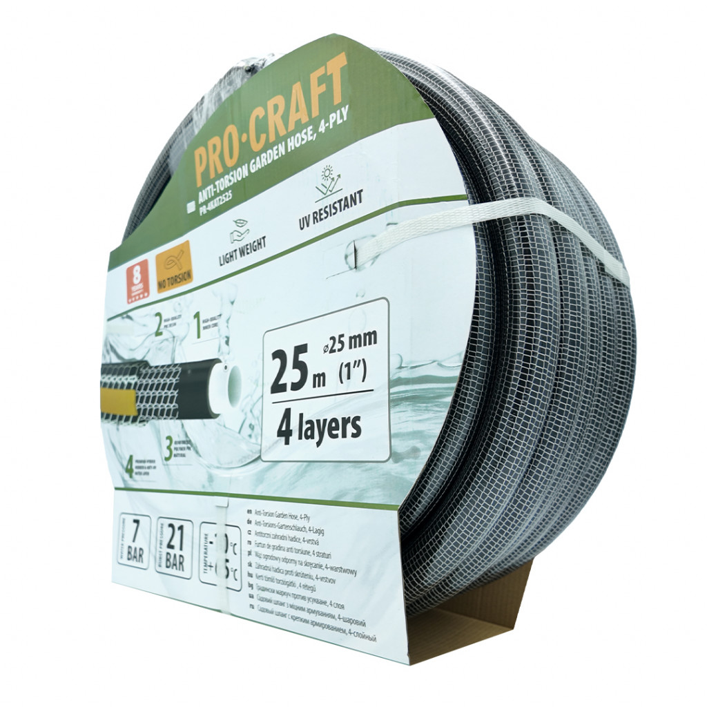 Černo-žlutá zahradní hadicí Procraft PR-4KAT2525 je zkrátka spolehlivým a odolným pomocníkem pro každého zahrádkáře, který ocení dlouhou životnost a bezstarostné používání.