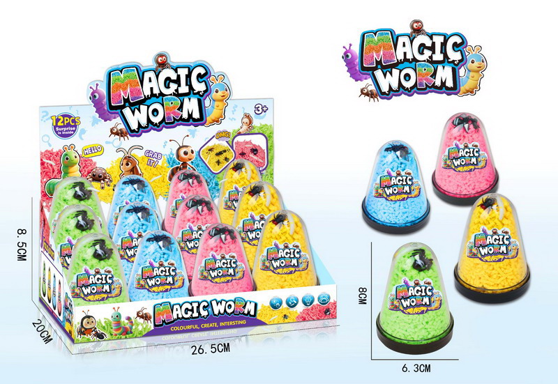 Dotaz na produktČervíci. Rozměry 6,3x6,3x8 cm. 12 ks display box. 4 varianty - zelená, modrá, růžová, žlutá.