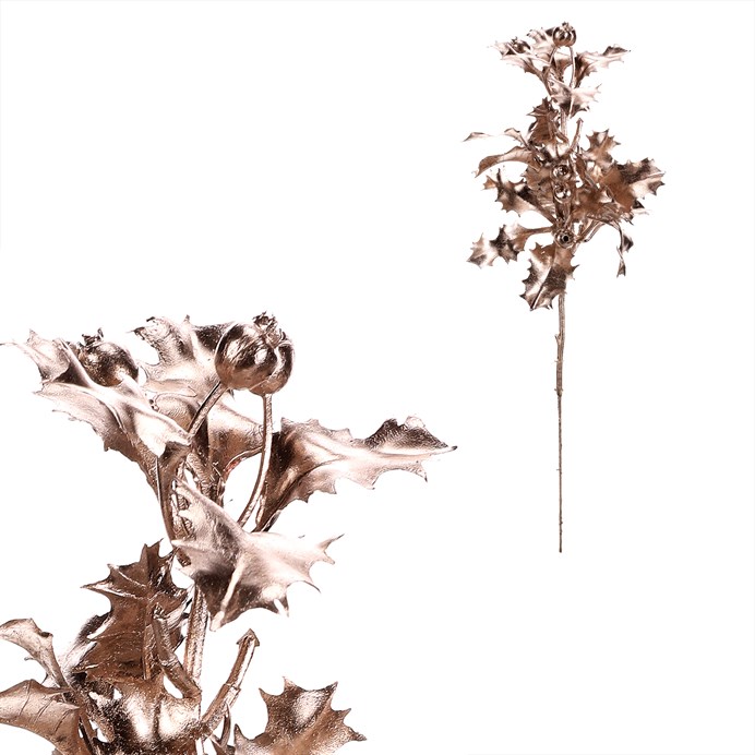 Dotaz na produktUmělá větev cesmíny v barevném champagne provedení je skvělým doplňkem pro vánoční výzdobu. Její lesklé lístky a drobné plody dodají aranžím slavnostní nádech a vytvoří elegantní kontrast k zeleným či červeným dekoracím. Vhodná pro zdobení stolů, věnců i svátečních kytic.