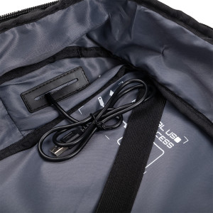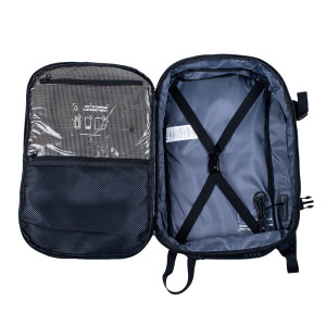 Největší výhoda, kterou inSPORTline Wingmate nabízí, je zadní úložný prostor otevíratelný celý jako kufr. Vše máš hned před sebou, žádné lovení věcí ze dna batohu. Uvnitř najdeš fixační popruhy, síťovanou kapsu na zip i nepromokavou kapsu na vlhké oblečení nebo kosmetiku – ideální po pláži, sportu nebo když se ti něco vylije. Nechybí ani propojovací kabel pro pohodlné používání powerbanky.